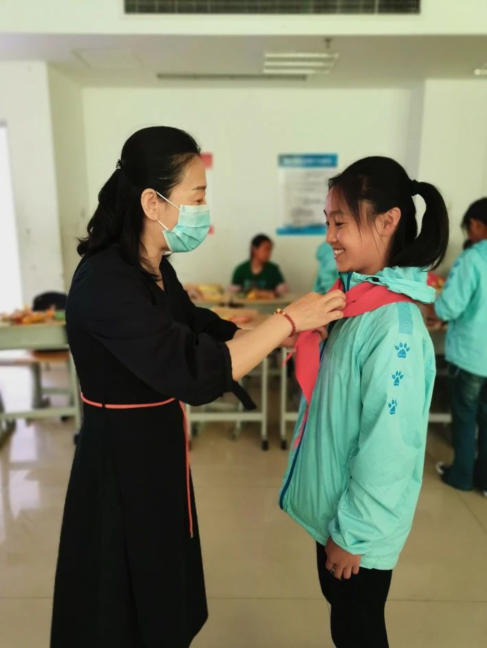 活動(dòng)伊始,班主任親手給同學(xué)們佩戴紅領(lǐng)巾,一起重溫了中國(guó)少年先鋒隊(duì)隊(duì)歌,并講解紅領(lǐng)巾和中國(guó)少年先鋒隊(duì)的由來(lái),告訴同學(xué)們?cè)诤推侥甏绾巫鲆幻细竦纳倌晗蠕h隊(duì)隊(duì)員,要從小樹(shù)立遠(yuǎn)大理想,立志成長(zhǎng)為“有理想、有道德、有文化、有紀(jì)律”的社會(huì)主義事業(yè)接班人。同學(xué)們高唱《我們是共產(chǎn)主義接班人》,整齊嘹亮的歌聲響徹教室,展示了體校學(xué)子們朝氣蓬勃、昂揚(yáng)向上的精神風(fēng)貌。
