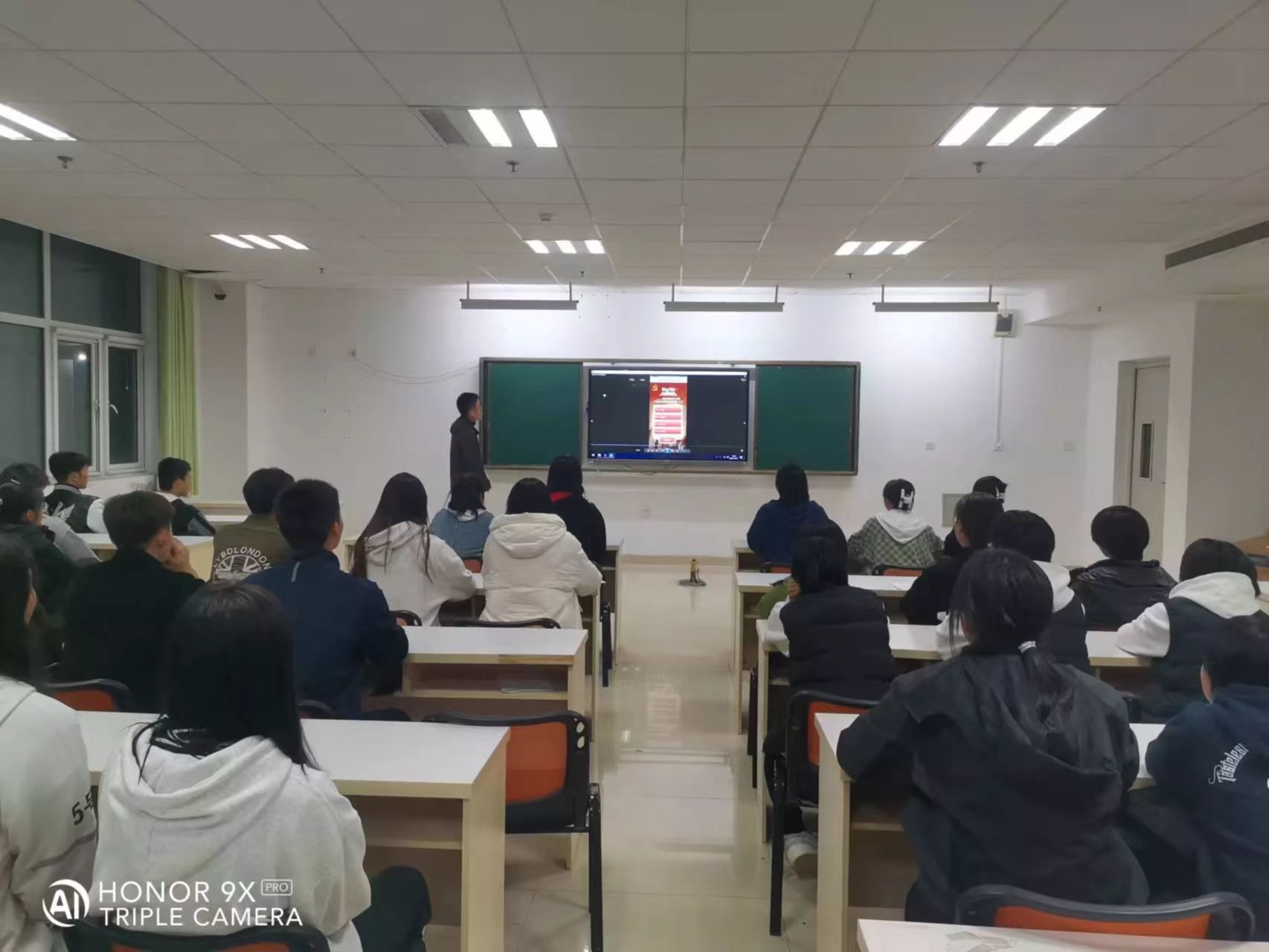 隨后,校團(tuán)委組織開展黨的二十大主題團(tuán)日活動:觀看影片《開天辟地大事件——中國共產(chǎn)黨成立》。團(tuán)員們投入地觀看影片,感受中國共產(chǎn)黨篳路藍(lán)縷的奮斗歷程。