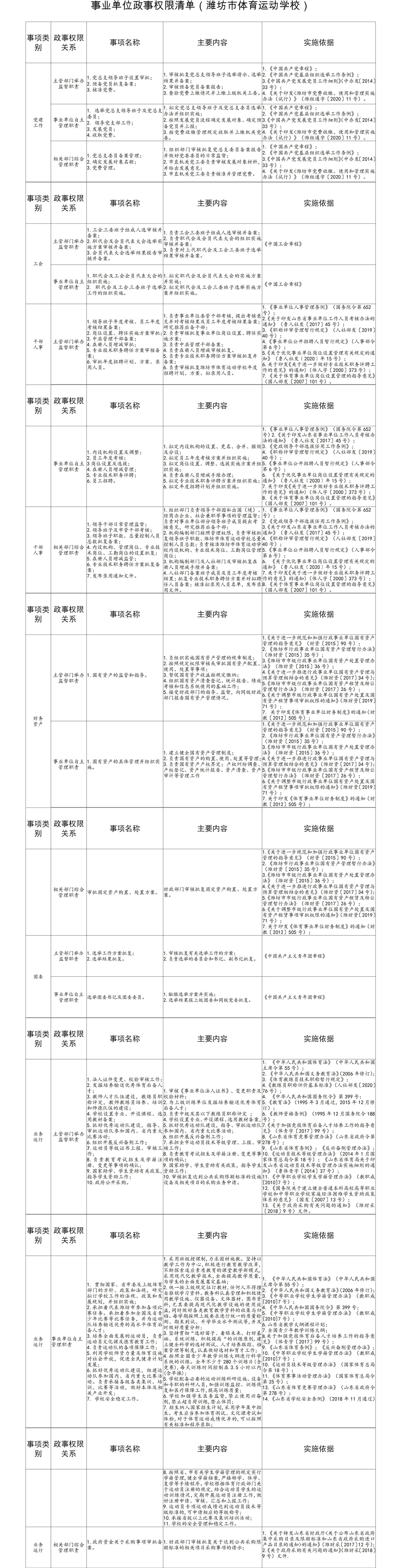 事業(yè)單位政事權(quán)限清單(濰坊市體育運(yùn)動(dòng)學(xué)校)
