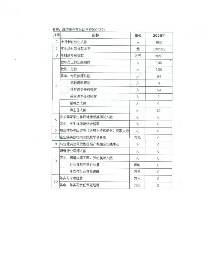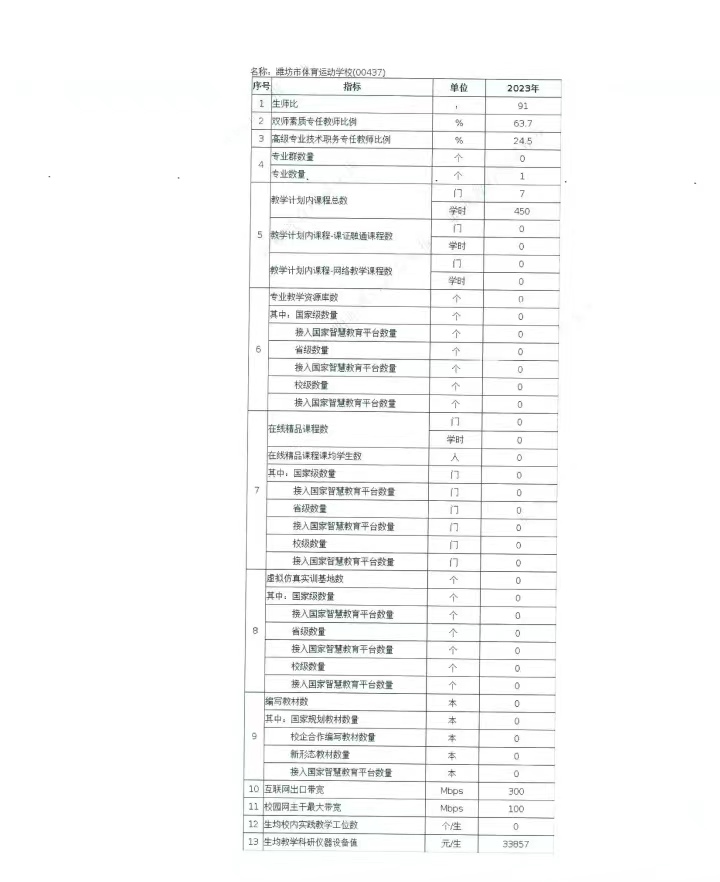 濰坊市體育運(yùn)動(dòng)學(xué)校2023年中等職業(yè)教育質(zhì)量年度報(bào)告