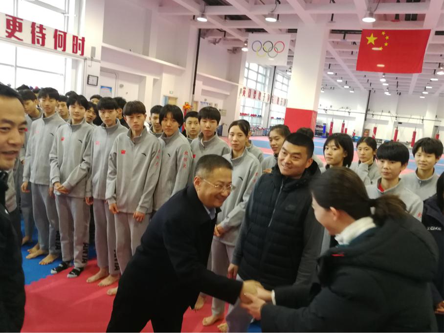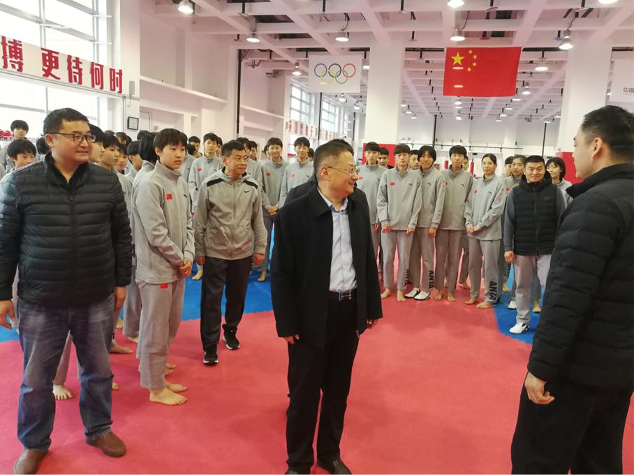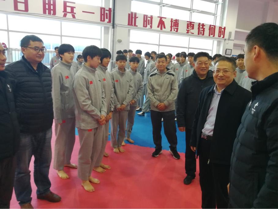 市體育局局長沃付賢到??赐繂柎汗?jié)留訓(xùn)運動隊